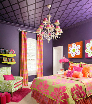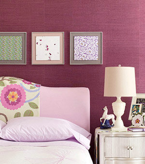 薰衣草般的夏季誘惑。深紫色的墻面,讓臥室被濃濃的薰衣草味道包裹,沒有多余潤飾的淡藕荷色床單,在色彩上和墻面十分搭調(diào),深淺的紫色對比讓全部空間并沒有想象中的厚重,而是在輕巧中透露出高雅,床頭大大的花朵圖案把寢室的溫馨拿捏得恰到益處。