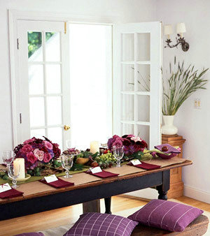 紫色軟飾的點綴。在大量留白的空間基調(diào)里,只需適當(dāng)運用一些紫色的布藝,比如紫白色相間的靠包,葡萄般的紫色餐巾布和紫紅色的花朵,即能讓平淡的空間立刻轉(zhuǎn)性。 喜歡在家里做一些復(fù)雜造型的裝修方式,已漸被拋棄。簡潔的家居設(shè)計可使房間顯得通透、明亮、寬敞,受到了人們的青睞。
