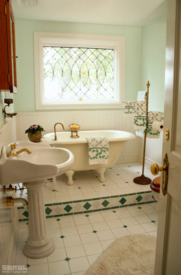 三要素定色屬于暖色系的紅、黃、橙,令人溫暖、喜悅,同時使空間感覺變小,而藍、綠等冷色系的顏色令人感覺寒冷、冷靜,使空間感覺較寬敞;另外,彩度及明度較高的色彩可塑造空間的寬敞,反之則使空間有穩(wěn)重感。除了色彩本身,照明效果就象色彩的“魔術(shù)師”,相同的顏色常因不同的光線亮度,在視覺上產(chǎn)生差異。因此,為衛(wèi)生間選擇色調(diào)前,應綜合考慮以上三要素。