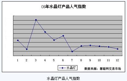 記得《非誠勿擾》的影片最后,范偉哭喪著臉說:“百年不遇的金融危機(jī)讓我趕上了,今年的經(jīng)濟(jì)形勢太不景氣了,五大投行黃了仨,什么都賣不動了?!苯鹑谖C(jī)影響最大的就是房產(chǎn)業(yè),房產(chǎn)業(yè)不景氣,導(dǎo)致家裝市場“唇亡齒寒”,這樣的形式下,可以想象燈具市場的形勢有多么嚴(yán)峻。因此,水晶燈的市場比較低迷,到了12月人氣指數(shù)甚至跌落到全年最低谷。
