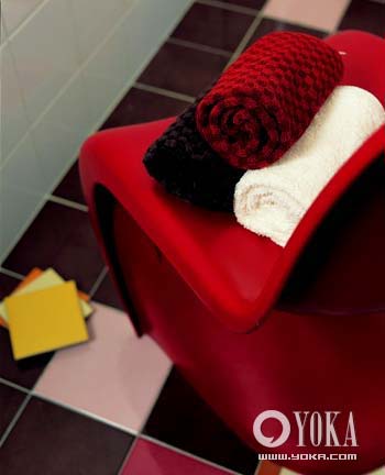 彩色地磚是突出的設(shè)計(jì),粉色、紅色與咖啡色自然過渡,穿插裝飾,整個(gè)色彩環(huán)境讓人感受到一種溫暖和舒爽,并搭配同色系的浴室配件,呈現(xiàn)出獨(dú)具魅力的女性氣質(zhì)。