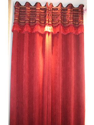 植絨面料的窗簾較為厚重, 吸音、遮光效果好;選用紅、黑配合的窗簾,有助于盡快入眠。