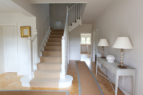 進入二樓的樓梯出,褐色夾雜著偏土黃色調的地毯隨著階梯緩緩而上。