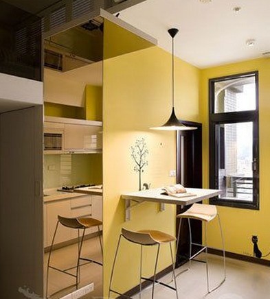 開放型的小廚房,整體的色調(diào)與造型都以現(xiàn)代簡(jiǎn)約風(fēng)格為主,流暢的直線設(shè)計(jì)。白色的兩人小餐桌色調(diào)純凈,與暖黃色背景墻對(duì)比非常和諧,色彩搭配分外出彩,讓人一下子有了親近自然的舒適感。