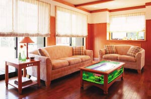 或富麗堂皇,或雍容華貴,或淡雅幽靜,豪宅大房的內(nèi)部裝修無不在追求個性的釋放,體現(xiàn)家居生活的樂趣。但無論是中西結(jié)合,沿襲古典,還是渲染異域風(fēng)情,都由價格不菲的各種家私組合而成,雖然傾注了不少心血,但久而久之會感覺缺少一些自然元素活躍這個華貴的生活空間。返璞歸真,崇尚自然,引入自然景觀成為家居布置的時尚話題,特別是水族造景,成為上層人士品味個性生活的追求。