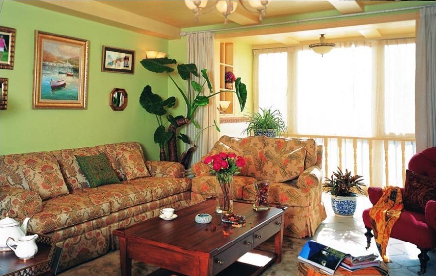 這樣的布藝沙發(fā)是美國人的大愛,舒適度極高而且夠?qū)挻?。偶爾出現(xiàn)的中國特色家具也讓人眼前一亮。