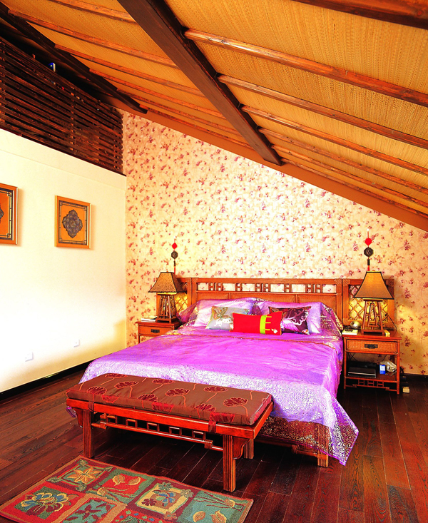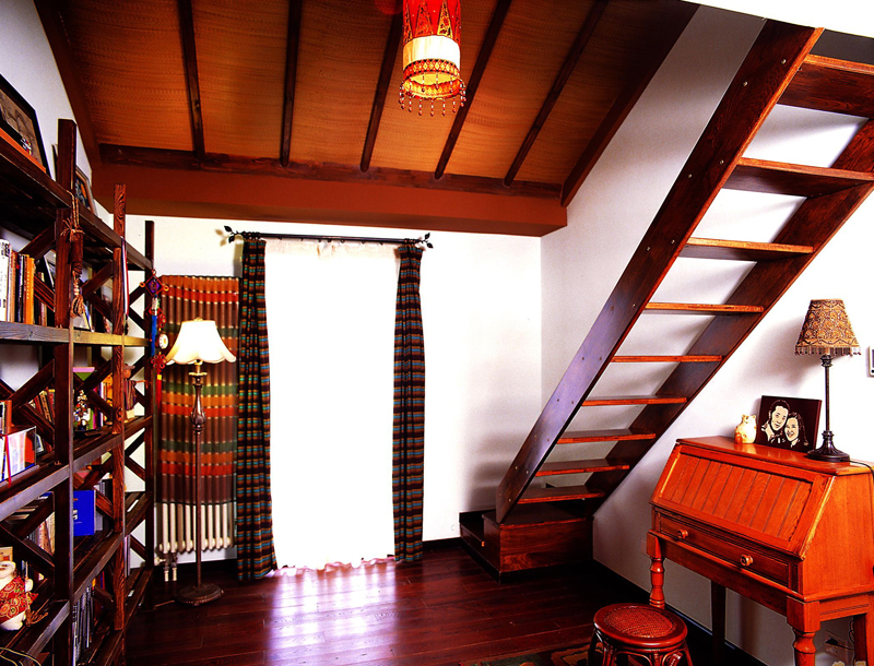 閣樓里的書房,安靜實用。東南亞風(fēng)格里最不少的就是原木材質(zhì)的家具,它原始風(fēng)情亦是如此。