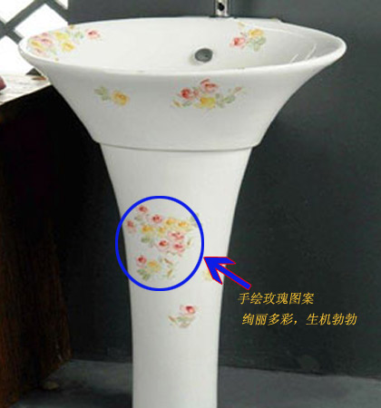 盆體上鏈接龍頭的一側(cè)有高過(guò)龍頭的花邊沿,這種設(shè)計(jì)可以有效的避免在洗漱的時(shí)候水濺出盆體外,弄臟地面,此外,在盆體藍(lán)色的花叢中還設(shè)有溢水孔,雙重保護(hù)衛(wèi)浴間的清潔。柱的底面積大于立柱中部的橫截面積,安裝時(shí)增加了整體的穩(wěn)固性。這些人性化的設(shè)計(jì)更加使她贏得了人們的青睞。