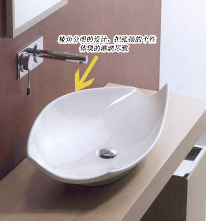 打破了面盆常規(guī)的方型或圓形的設(shè)計(jì),分明的棱角和完美的弧度巧妙結(jié)合,賦予恪守古典和追求時(shí)尚,個(gè)性新的詮釋。這個(gè)完美的結(jié)合,正是迎合當(dāng)代新人追趕潮流的需求。臺(tái)盆更適用于開(kāi)間較大的衛(wèi)生間,顯得莊重大氣~~