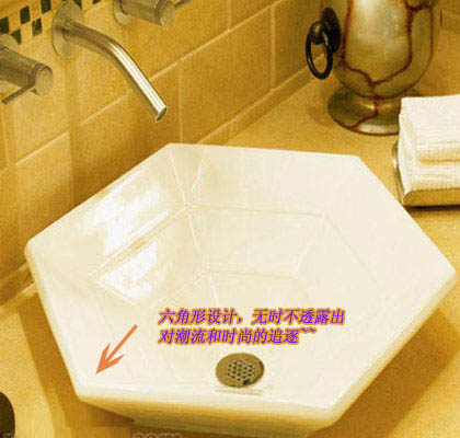 與眾不同的六角形設(shè)計(jì),潮流中透著古典,樸素中透露著高雅??鋸埓竽懙脑O(shè)計(jì)無(wú)時(shí)無(wú)刻不流露出張揚(yáng)的個(gè)性。當(dāng)之無(wú)愧的成為現(xiàn)代浴室擺設(shè)的焦點(diǎn)所在,此時(shí)的她不再單單是一件衛(wèi)浴 面盆,而是一件巧奪天工的藝術(shù)品~~