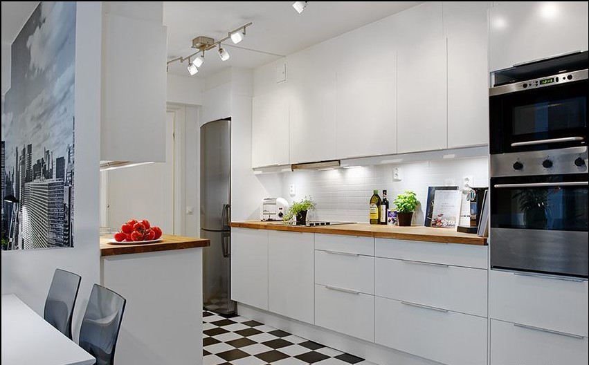 直接線的櫥柜線條,顯示了空間的簡(jiǎn)約性。拼接瓷磚又能給空間加分。
