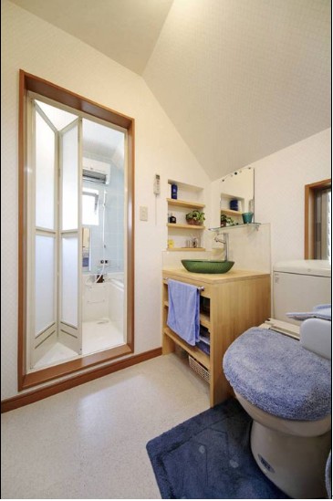 洗手間白色作為底色點綴少許藍色,藍色的地毯和毛巾,給人干凈純潔的感覺,而且風(fēng)格一致。