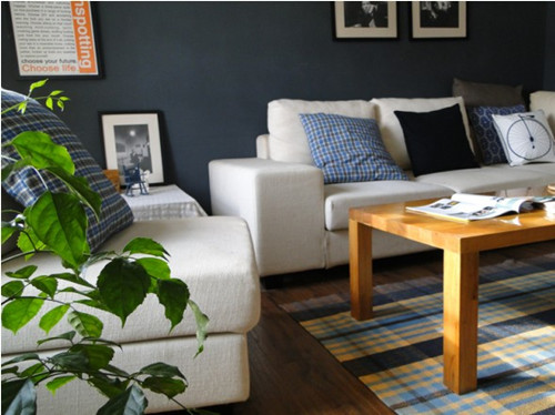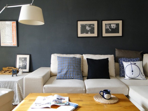色彩將客廳空間里裝飾的層次分明,沙發(fā)映稱著墨藍(lán)的墻面,顯得干凈明了。有時(shí)候時(shí)尚就是這么簡(jiǎn)單。