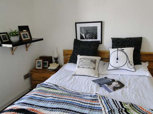 年輕男人的臥室可以很動(dòng)感,如同那條七彩條紋的床單。