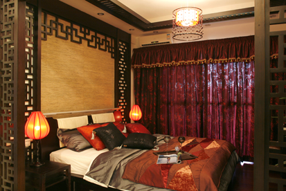 臥室在色彩以及后期軟裝飾搭配上都與中式的細(xì)膩相吻合,這個(gè)雕梁畫棟的主臥。