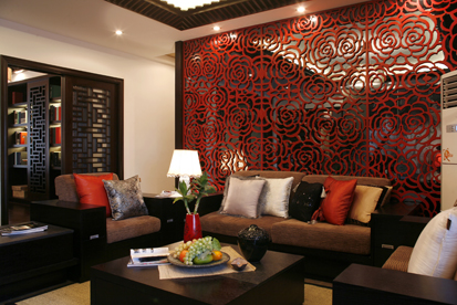 務(wù)實(shí)、細(xì)膩、精致的設(shè)計(jì)手法打造的客廳,背景墻得以炫目。精細(xì)的工藝手法成就了這一面鏤空隔段墻,運(yùn)用中國(guó)紅的傳統(tǒng)色彩,透出純?nèi)坏闹惺轿幕L(fēng)彩,這是一種深刻文化的姿態(tài)。本案中營(yíng)造的是一種使空間盡情地?fù)]灑源遠(yuǎn)流長(zhǎng)的神韻,讓空間充滿生命力同時(shí)也富有文化底蘊(yùn)。