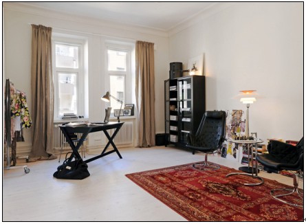 小巧的客廳同時(shí)具備書房的功能,但分區(qū)很明確。白白的房間簡(jiǎn)單配以黑色的靠椅,舍棄笨重的沙發(fā),輕便的靠椅同樣能帶來沙發(fā)的功效。每一個(gè)細(xì)節(jié)的鋪成都呈現(xiàn)出令人舒適的感覺。