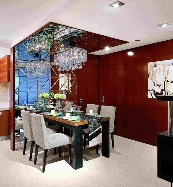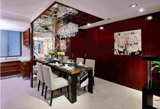 一開始本想餐桌這款運(yùn)用灰鏡來做的,業(yè)主執(zhí)意要用這種,沒辦法客戶是上帝,最初還擔(dān)心視覺上會看上去很亂,最后的效果,還算松了一口氣。