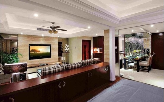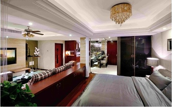 臥室也被做成了敞開式的,一開始業(yè)主很擔(dān)心,應(yīng)為決定很沒安全感,但是為了拉伸空間感,也算小犧牲了一把。本來業(yè)主心里還有點(diǎn)怨氣,但最后的整體效果也讓他消了氣。整體色調(diào)相貫通,而且還省了戈電視機(jī),何樂而不為。哈哈。