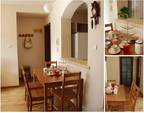 玄關(guān)處設(shè)計實用美觀,進(jìn)門便可將餐廳盡收眼底,設(shè)計小巧且居實用性,一側(cè)實木小吧臺的加入給這個小戶型帶來一絲特別。餐廳家具的選擇多半選用了原木材料,打造出一個環(huán)保自己的風(fēng)格路線。