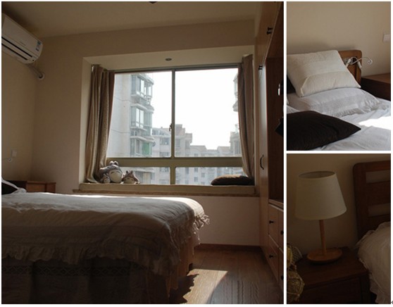 臥室設(shè)計溫馨而舒適,也是屋主對時尚的詮釋和表達(dá),實木家具則是環(huán)保懷舊的態(tài)度,棕色富有質(zhì)感的窗簾、米色的床單。一種素色溫馨的高雅。