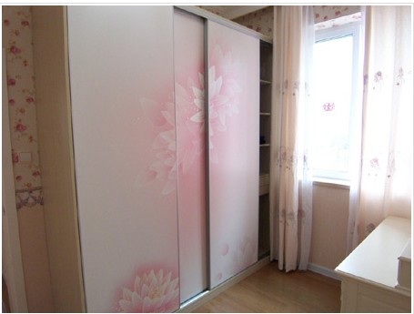 衣柜上粉色的噴繪花朵還有墻壁上的小碎花,是否很可愛呢