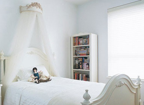 霧藍(lán)色的女兒房,純凈無(wú)瑕,滿(mǎn)是年少的淡淡輕愁與憧憬。漂亮的床冠裝飾,猶如公主皇冠高貴不凡。