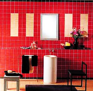 面盆所在的梳洗區(qū),早晨起床后、晚上就寢前的洗漱工作都在這里進(jìn)行,把這個(gè)區(qū)域的墻面設(shè)計(jì)得出眾些,用紅色和黑色瓷磚組拼一道主題裝飾墻,可讓一天的心情更加美好。
