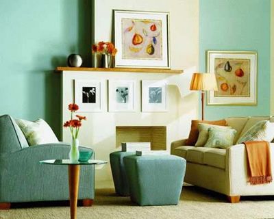 光是從玄關(guān)進(jìn)入餐廳的角度來(lái)看,一個(gè)小小的用餐空間,就存在著火紅、天藍(lán)、粉橘……等三--四種顏 色不等,而藍(lán)綠色的天花板,與墻面同一色調(diào)的畫作,是設(shè)計(jì)師有意讓視覺延伸與對(duì)應(yīng),使色彩表現(xiàn)出一種立體的趣味。