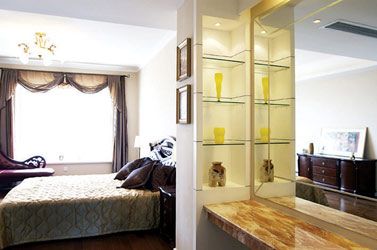 屋主說(shuō),客廳是他最喜歡的地方,由設(shè)計(jì)師親自挑選的細(xì)致水晶燈飾、雙色沙發(fā)的搭配,甚至于飾品的 擺設(shè),再加上搶眼的紅色柜面與門片,在年輕風(fēng)格之余,又增加了一抹屬于女人味的小華麗風(fēng)情。