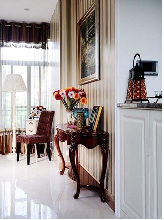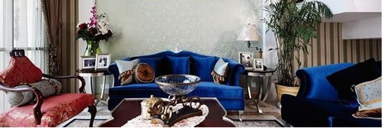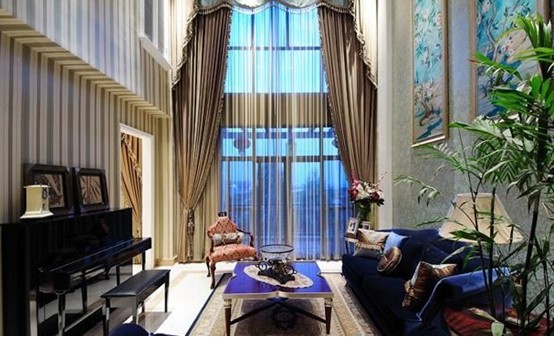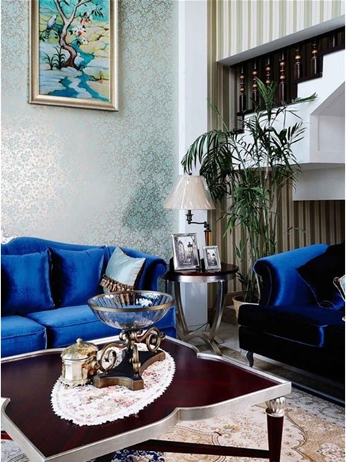 推門而入時,那一股貴族藍的氣息就向你迎面襲來,色彩豐富的抱枕裝飾則巧妙地過渡了空間的色澤順序。各式精美的工藝品令人耳目一新,美式古典造型的家具陳列,在提供業(yè)主功能便利性的同時,也賦予空間一種別致的美感。