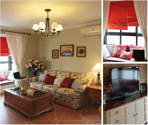 印花的古典沙發(fā),典雅中透著高貴,深沉里顯露豪華,懷舊感的實木茶幾,則顯示出美式家居的文化韻味和歷史內涵。