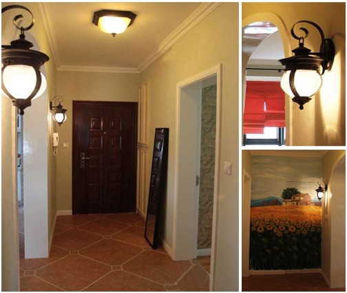 一入門就能看到具有美式鄉(xiāng)村風格壁燈與壁畫,柔和的燈光/溫暖的壁畫,讓整個玄關處帶有復古韻味,在這樣的環(huán)境中深受到一份靜謐優(yōu)雅。