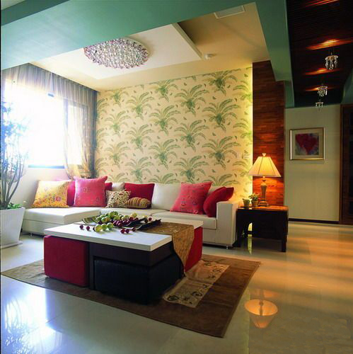 這個(gè)角度看客廳好溫馨,好喜歡這圓形的的水晶燈,呵呵 這家主人還挺會挑選的,壁紙與那盆綠色的植物還挺搭配的。整個(gè)空間很唯美!