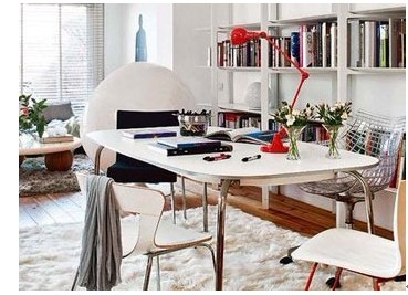 概要: 白色的空間內(nèi)必定少不了糖果色的點綴。一把造型新穎的休閑靠椅,一盞橘紅色的臺燈,書架上琳瑯滿目的書架,都是紅與白的完美搭配,素雅中隱藏著熱情,也使整個空間充滿現(xiàn)代感。線條簡單的工作臺放置在客廳的一側(cè),金屬質(zhì)感的座椅,搭配上溫暖的地毯,增加了空間的溫馨感。