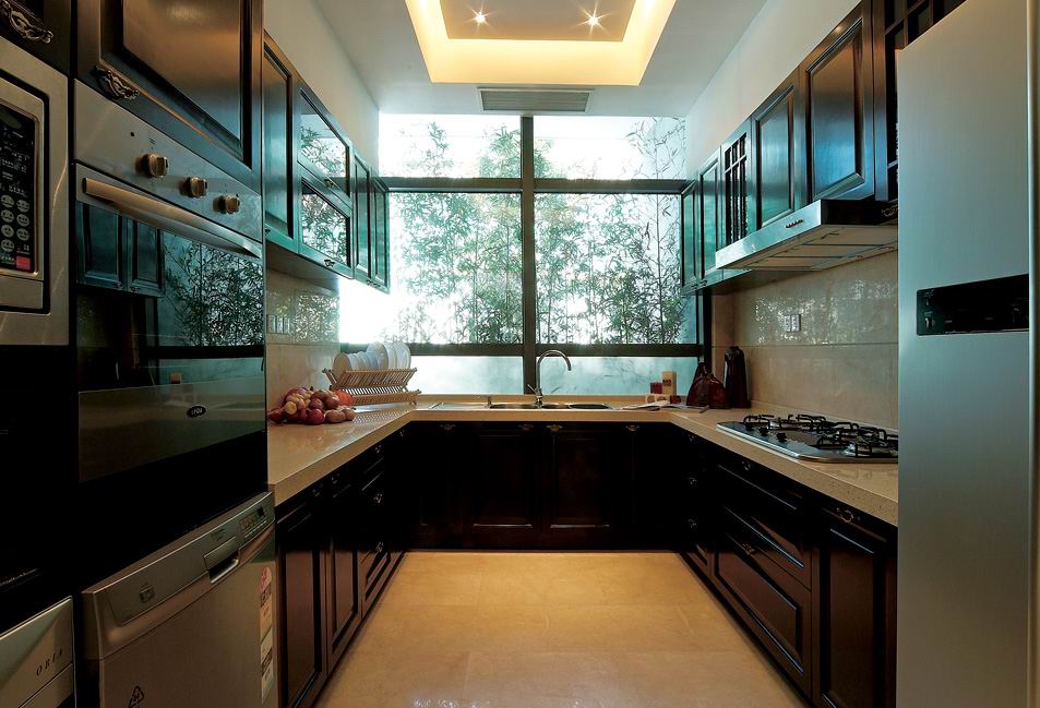 中餐很有講究,因此廚房內(nèi)光線要充足,晚上的燈光也要夠亮,并且燈光的顏色應(yīng)該是白色的,否則會(huì)影響對(duì)食物的判斷,飯菜的火候不易掌握。同時(shí)還要避免燈光產(chǎn)生陰影,最好不要用射燈。