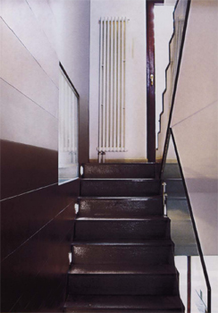 直梯具有簡約的直線造型,不帶有任何拐角,它方便行走,特別適合有老人,小孩的家庭。傾斜而上的直梯依墻而立,而樓梯旁邊的墻壁則成為最好的展示平臺,在這里可以懸掛一些畫框,也可以展示家庭成員的照片,單調(diào)的樓梯走廊也因此顯得情意濃濃;另外,還可以利用樓梯下有限的空間進行有效設(shè)計,作為各種儲藏之用。
