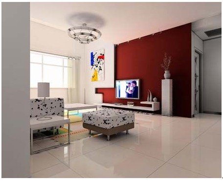客廳潑墨圖案的沙發(fā)隨性而自然,電視墻掛畫(huà)也采用隨性自然的風(fēng)格,紅與白搭配出的電視背景墻面,讓客廳空間賦予創(chuàng)意性和現(xiàn)代感。