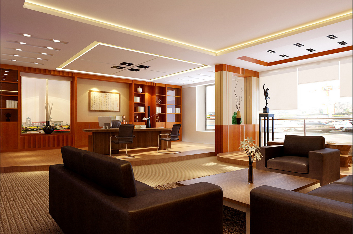 概要: 總經(jīng)理是一公司之主,如一國之君,我們可把他的辦公室安排在帝王之相的西北方,讓他有君臨天下、一統(tǒng)大業(yè)的雄心。這個方位宜盡量用白、金黃色來裝潢,飾物以方形為佳,切忌在這兒放一些瓶瓶罐罐及污穢的物品。 一個公司的總經(jīng)理必須坐在旺氣生財?shù)奈恢?,才能具有整體的領(lǐng)導(dǎo)統(tǒng)御能力。那要如何來選定使用空間的位置呢。