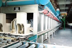 上釉的半成品干燥后,即可入輥道窯燒成