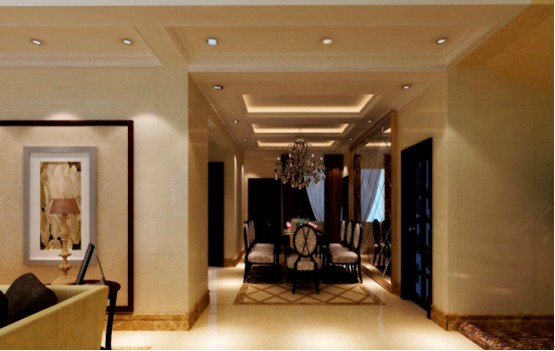 這是挑高的客廳,布置上是風(fēng)水學(xué)里最招財(cái)?shù)?,明亮寬敞??蛷d是體現(xiàn)整個(gè)居家裝修最重要的位置。我們?cè)诜桨柑幚砩喜捎盟У牡鯚?、拼花的地面、帶圖案的地毯以及帶紋樣的壁紙。這樣無一不散發(fā)出他的尊貴氣質(zhì)。米色系的大理石跟深色橡木的家私,組合成經(jīng)典的對(duì)比色系,既體現(xiàn)了家具的厚重、典雅,又不會(huì)讓空間感覺到過于沉重。墻面金鏡的運(yùn)用以及精致工藝飾品的擺設(shè),更加豐富了空間的層次,給人更加愉悅的視覺感受