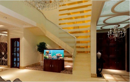 樓梯下面的風(fēng)水魚水箱的擺放處,如果想家里的風(fēng)水魚永遠(yuǎn)保持活力,不防試試電子魚吧,不會(huì)出現(xiàn)死掉的可能哦。