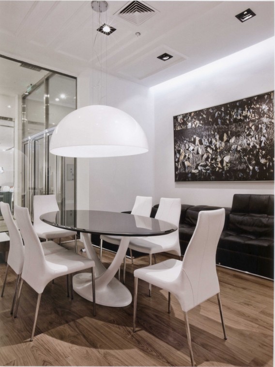 大氣而不俗的風(fēng)格定位,讓本案設(shè)計(jì)必須配合新古典主義的風(fēng)尚和簡約寫意的風(fēng)格。室內(nèi)基本比較簡潔,利用黑白兩個(gè)分區(qū)把新古典主義和現(xiàn)代風(fēng)格區(qū)分開來,深色玻璃讓兩個(gè)空間分開的同時(shí)又相互聯(lián)系。高貴而大氣是本案的核心品質(zhì),室內(nèi)設(shè)計(jì)必須努力做到這一點(diǎn),才能與之相一致。當(dāng)人站在深色的空間時(shí),遠(yuǎn)處淺色的空間也同樣吸引著你的視線。淺色空間里帶有金屬光澤的家具足以吸引人們進(jìn)另一個(gè)空間,這就利用了視覺心理,讓人們的視線在這個(gè)空間彼此交替。