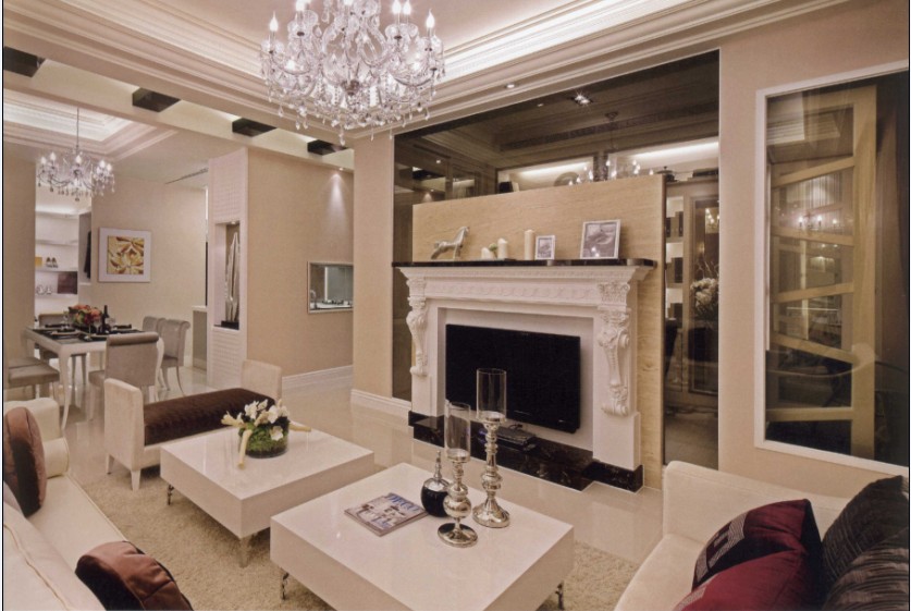 這個(gè)客廳其實(shí)并不大,它到處都洋溢著一和諧氣息。一派大氣優(yōu)雅的大家風(fēng)范,美式古典壁爐以精致的雕花展現(xiàn)風(fēng)情??臻g不需要太大,夠用就剛剛好了。