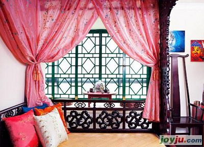 概要: 孔子說:文勝質(zhì)則史,質(zhì)勝文則野,文質(zhì)彬彬然后君子。講的是形式與內(nèi)容和諧才是最佳境界。繪畫出身的謝成成對(duì)藝術(shù)與設(shè)計(jì)有獨(dú)特的理解,用現(xiàn)代手法表現(xiàn)中國(guó)的傳統(tǒng)意境是他的技巧,兩者結(jié)合成就了現(xiàn)在這個(gè)家。廂床的粉色紗幔與背景的綠色相互對(duì)比,拉大了空間的距離感?! 】臻g的格局基本沒改,墻面的色彩也十分簡(jiǎn)單,謝成成用白水泥替代了白色涂料,目的就是為了避免濃重的有害氣味。