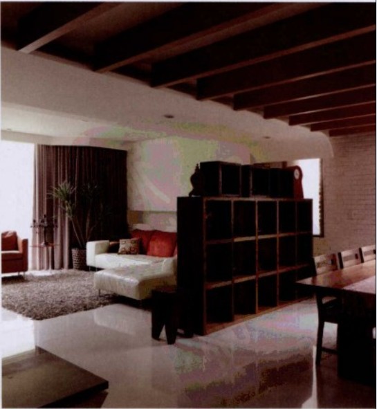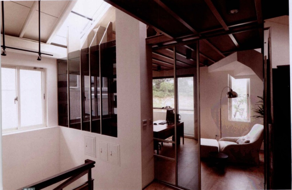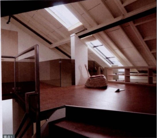 設(shè)計(jì)師運(yùn)用開放式空間規(guī)劃,減少木作的使用,以突出挑高、無壓的空間優(yōu)勢,并使用環(huán)何涂料及原木地板等環(huán)保建材,不只在于健康空間的營造,也讓受閱讀的屋主所收藏的書籍有適當(dāng)?shù)氖占{空間。保留斜屋頂,將挑高的區(qū)域規(guī)劃為閣樓,充分采光的天窗及玻璃扶手隔屏連接書房,滿足了收費(fèi)也營造了良好的閱讀氛圍。