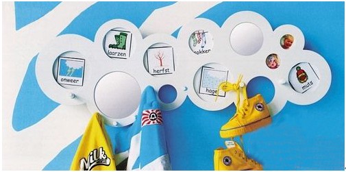 藍與白形成鮮明的對比,撞色搭出個性裝飾墻。天藍色的墻面設(shè)計了一些富有創(chuàng)意的掛鉤,整個造型如同一朵飄逸的云朵,呈現(xiàn)出年輕生動的感覺,再搭配上掛鉤的美麗造型,充滿青春活力的墻面效果就裝飾成功了。讓這個墻面變得非常養(yǎng)眼。
