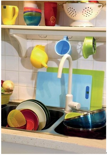 鍋碗瓢盆都用上了糖果色,搭配上白色的墻壁和白色水龍頭以及白色隔板,讓這么個樸素的色彩平臺,提高了很大的飽和度,純粹的糖果色搭配,再多的色彩也不怕繁復(fù),讓廚房空間成為一個色彩大舞臺,設(shè)計出一個屬于年輕自己的個性廚房空間。