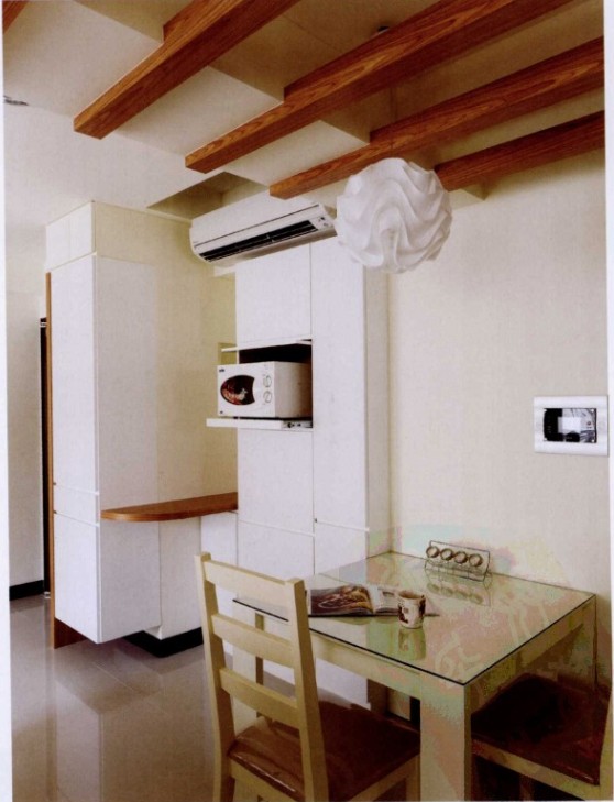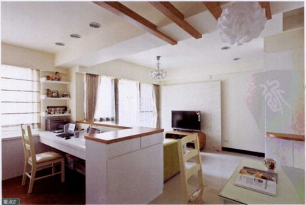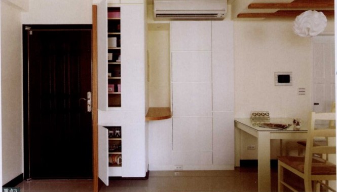 因?yàn)槭切∽≌晕葜鲗?duì)于把握空間的利用率更為在意,特別是收納功能的規(guī)劃很重視。除了收納空間的設(shè)計(jì)外,屋主對(duì)于空間風(fēng)格也有自己的偏好,喜歡明亮、清爽又帶溫馨的空間質(zhì)感。由于室內(nèi)只有50平,除了主臥外,其他空間皆采用開放式設(shè)計(jì)。設(shè)計(jì)師順應(yīng)空間特性規(guī)劃收納功能,從入門玄關(guān)鞋柜連接餐柜,到哪臺(tái)連接書桌等等,皆以復(fù)合式功能概念規(guī)劃,屋主最重視的書柜也以雙層設(shè)計(jì)達(dá)到雙倍收納,充分利用了空間。