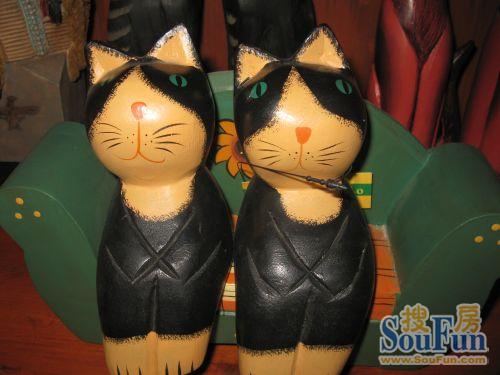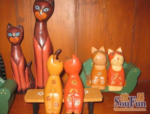 木質雕刻的貓貓造型一對。古樸典雅,小碎花點綴在紅色的底色上,放在房屋的任何一角都是屋子的亮點。相信不少朋友選用的是紅色的沙發(fā),沙發(fā)旁的小茶幾上擺放一對木刻貓,整體搭配特點更佳突出。